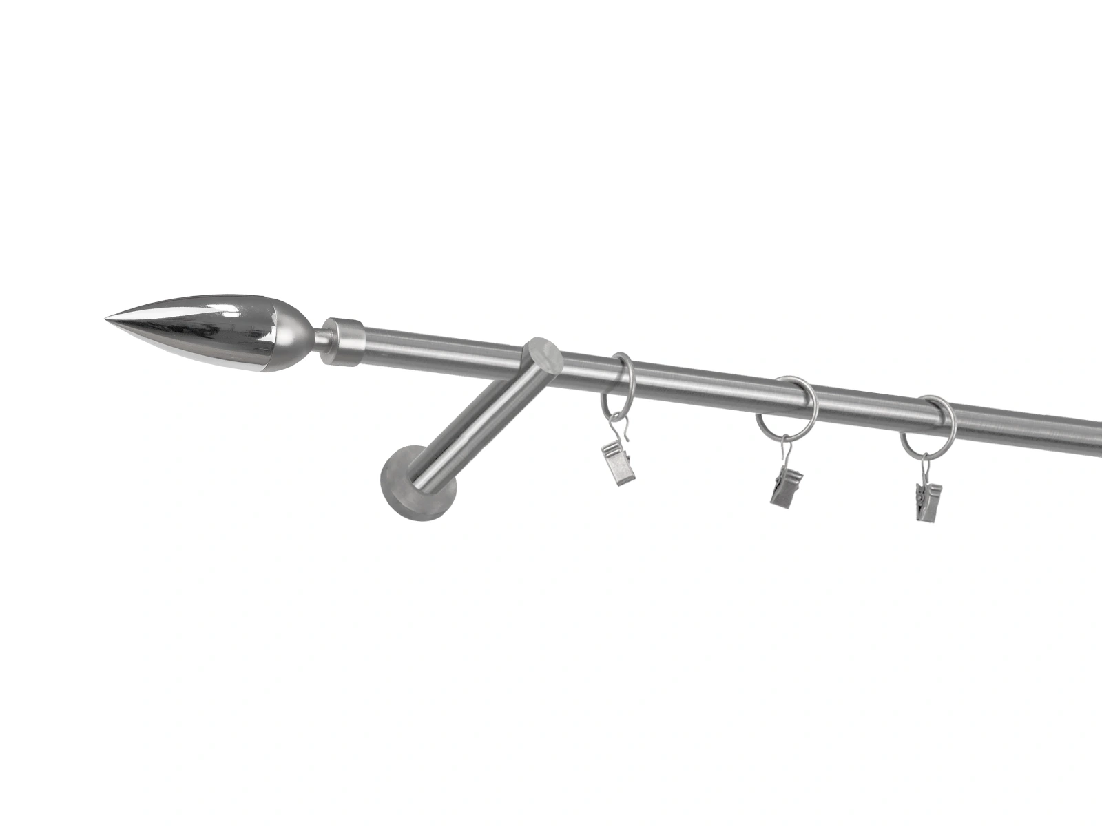 • Dĺžka 2200 mm - tyč 16mm - 2200mm - 1ks, držiak - 2ks, koncovka - 2ks, krúžok so štipcom - 21ks (pri výbere parametra príslušenstvo s krúžkami so štipcom), skrutky a hmoždinky na montáž