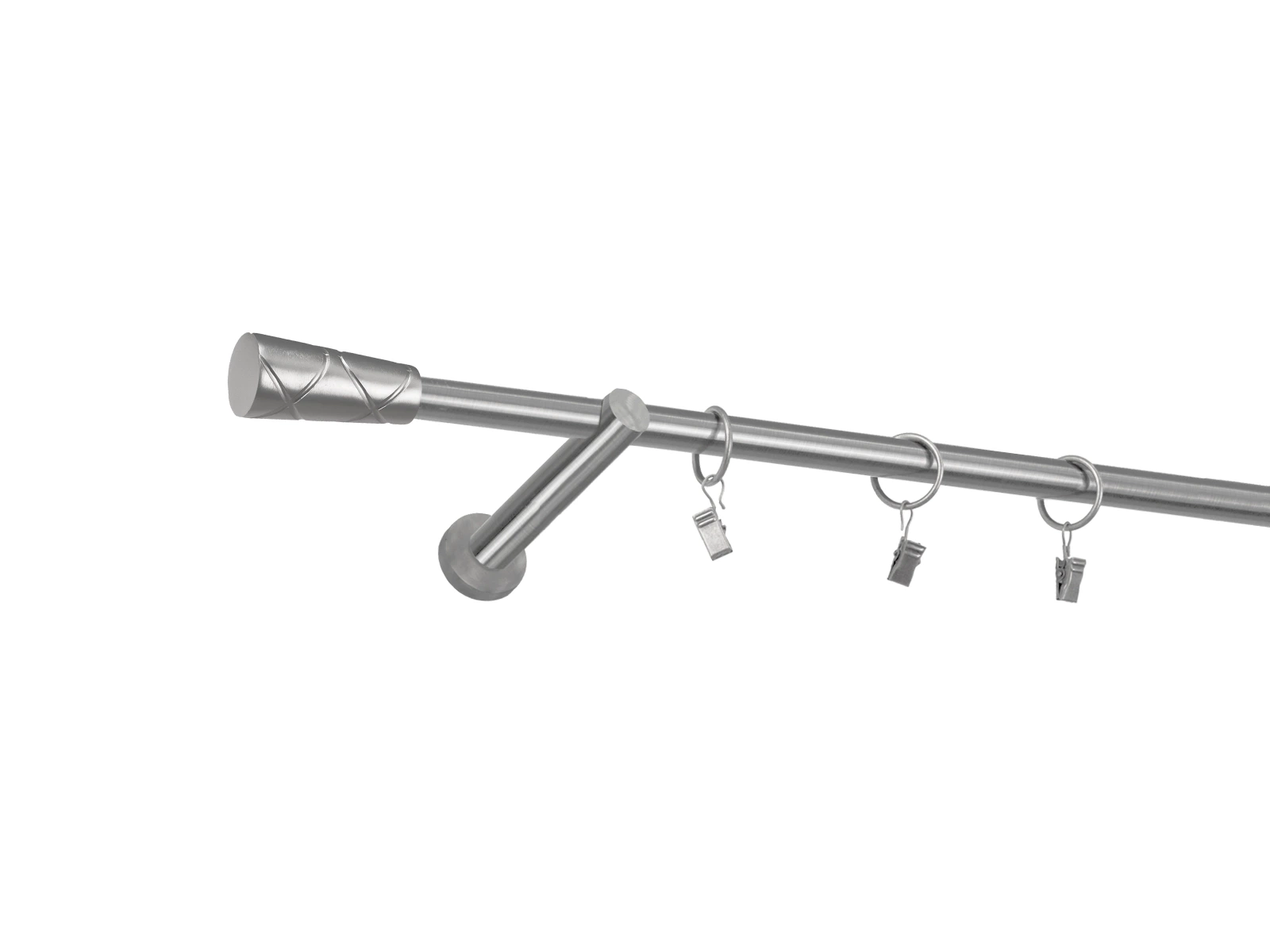 • Dĺžka 1600 mm - tyč 16mm - 1600mm - 1ks, držiak - 2ks, koncovka - 2ks, krúžok so štipcom - 15ks (pri výbere parametra príslušenstvo s krúžkami so štipcom), skrutky a hmoždinky na montáž