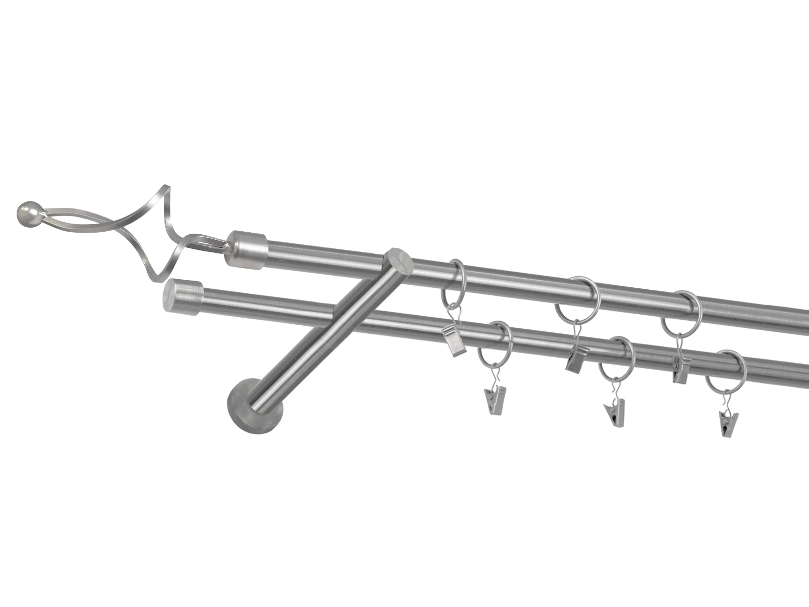 • Dĺžka 3200 mm - tyč 16mm - 1600mm - 4ks, spojka tyče – 2 ks, držiak dvojitý - 3ks, koncovka - 2ks, koncovka zadná (PULLO) - 2ks, krúžok so štipcom - 60ks (pri výbere parametra príslušenstvo s krúžkami so štipcom), skrutky a hmoždinky na montáž