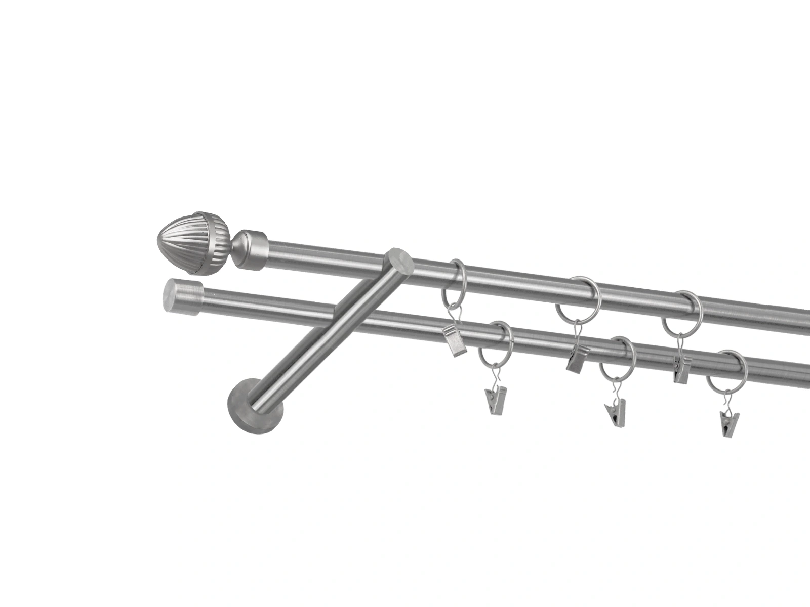• Dĺžka 3200 mm - tyč 16mm - 1600mm - 4ks, spojka tyče – 2 ks, držiak dvojitý - 3ks, koncovka - 2ks, koncovka zadná (PULLO) - 2ks, krúžok so štipcom - 60ks (pri výbere parametra príslušenstvo s krúžkami so štipcom), skrutky a hmoždinky na montáž