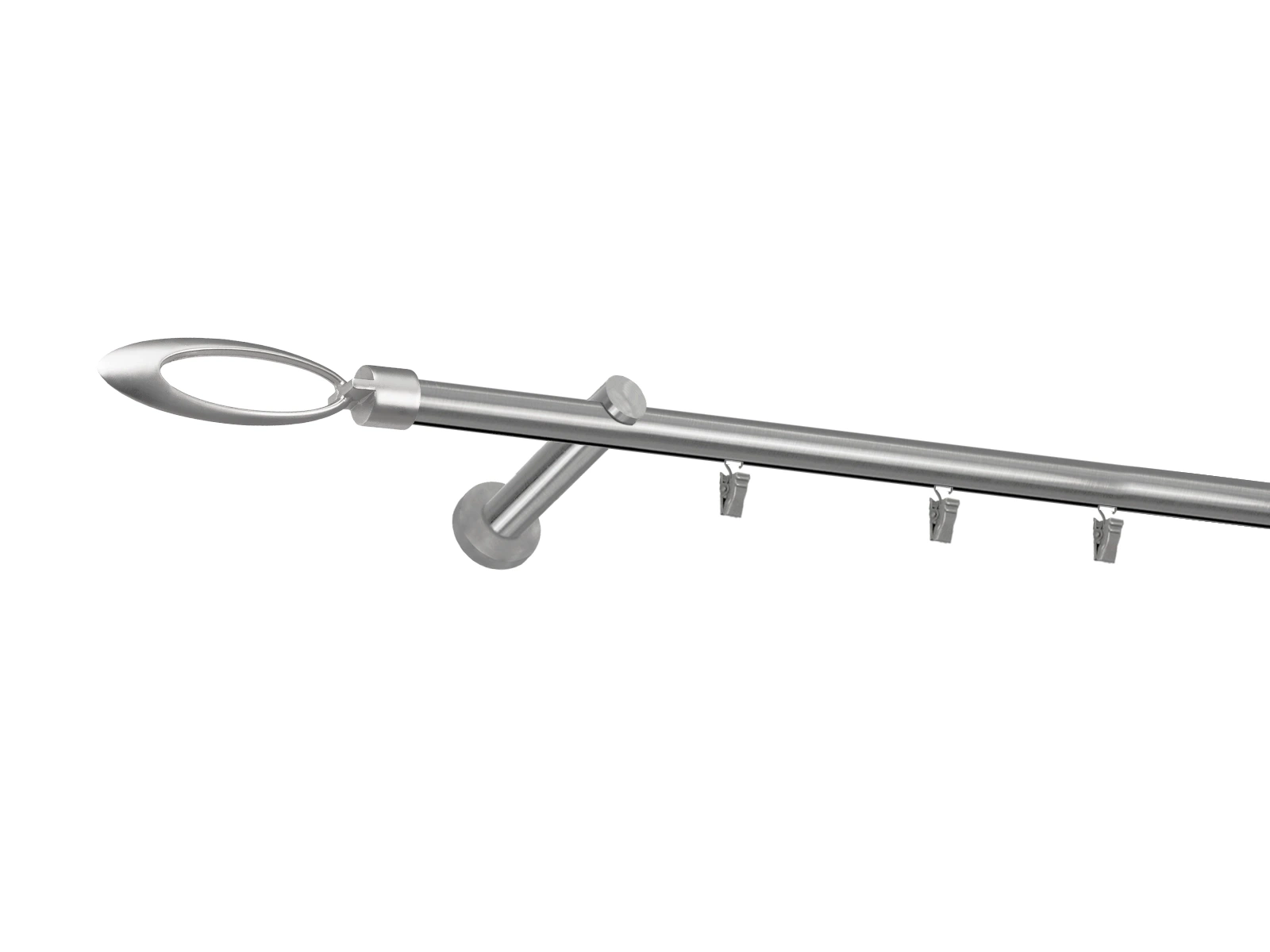 Dĺžka 1800 mm - tyč 19mm - 1800mm - 1ks, držiak - 2ks, koncovka - 2ks, krúžok so štipcom - 17ks (pri výbere parametra príslušenstvo s krúžkami so štipcom), skrutky a hmoždinky na montáž