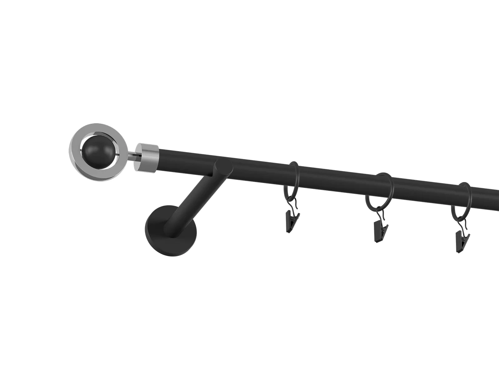 • Dĺžka 1800 mm - tyč 19mm - 1800mm - 1ks, držiak - 2ks, koncovka - 2ks, krúžok so štipcom - 17ks (pri výbere parametra príslušenstvo s krúžkami so štipcom), skrutky a hmoždinky na montáž