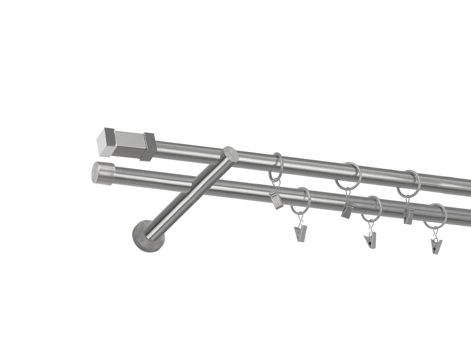 • Dĺžka 3600 mm - tyč 19mm - 1800mm - 4ks, spojka tyče – 2 ks, držiak dvojitý - 3ks, koncovka - 2ks, koncovka zadná (PULLO) -2ks, krúžok so štipcom - 68ks (pri výbere parametra príslušenstvo s krúžkami so štipcom), skrutky a hmoždinky na montáž