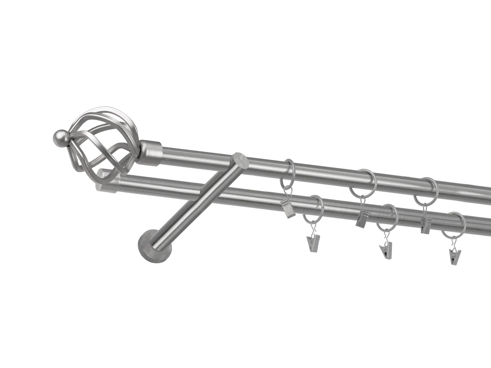 • Dĺžka 4400 mm - tyč 19mm - 2200mm - 4ks, spojka tyče – 2 ks, držiak dvojitý - 3ks, koncovka - 2ks, koncovka zadná (PULLO) -2ks, krúžok so štipcom - 84ks (pri výbere parametra príslušenstvo s krúžkami so štipcom), skrutky a hmoždinky na montáž