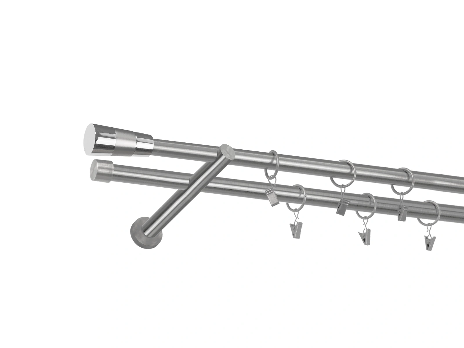 • Dĺžka 1600 mm - tyč 19mm - 1600mm - 2ks, držiak dvojitý - 2ks, koncovka - 2ks, koncovka zadná (PULLO) - 2ks, krúžok so štipcom - 30ks (pri výbere parametra príslušenstvo s krúžkami so štipcom), skrutky a hmoždinky na montáž