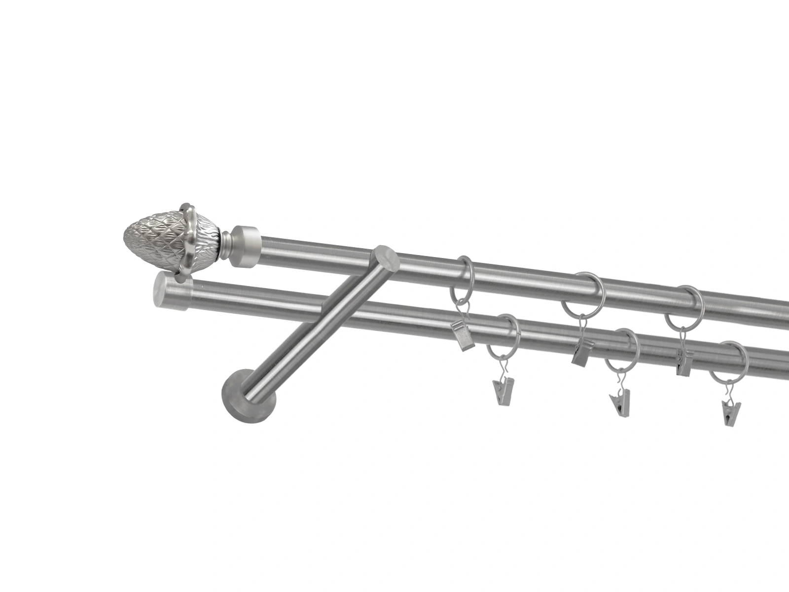 • Dĺžka 1600 mm - tyč 19mm - 1600mm - 2ks, držiak dvojitý - 2ks, koncovka - 2ks, koncovka zadná (PULLO) - 2ks, krúžok so štipcom - 30ks (pri výbere parametra príslušenstvo s krúžkami so štipcom), skrutky a hmoždinky na montáž