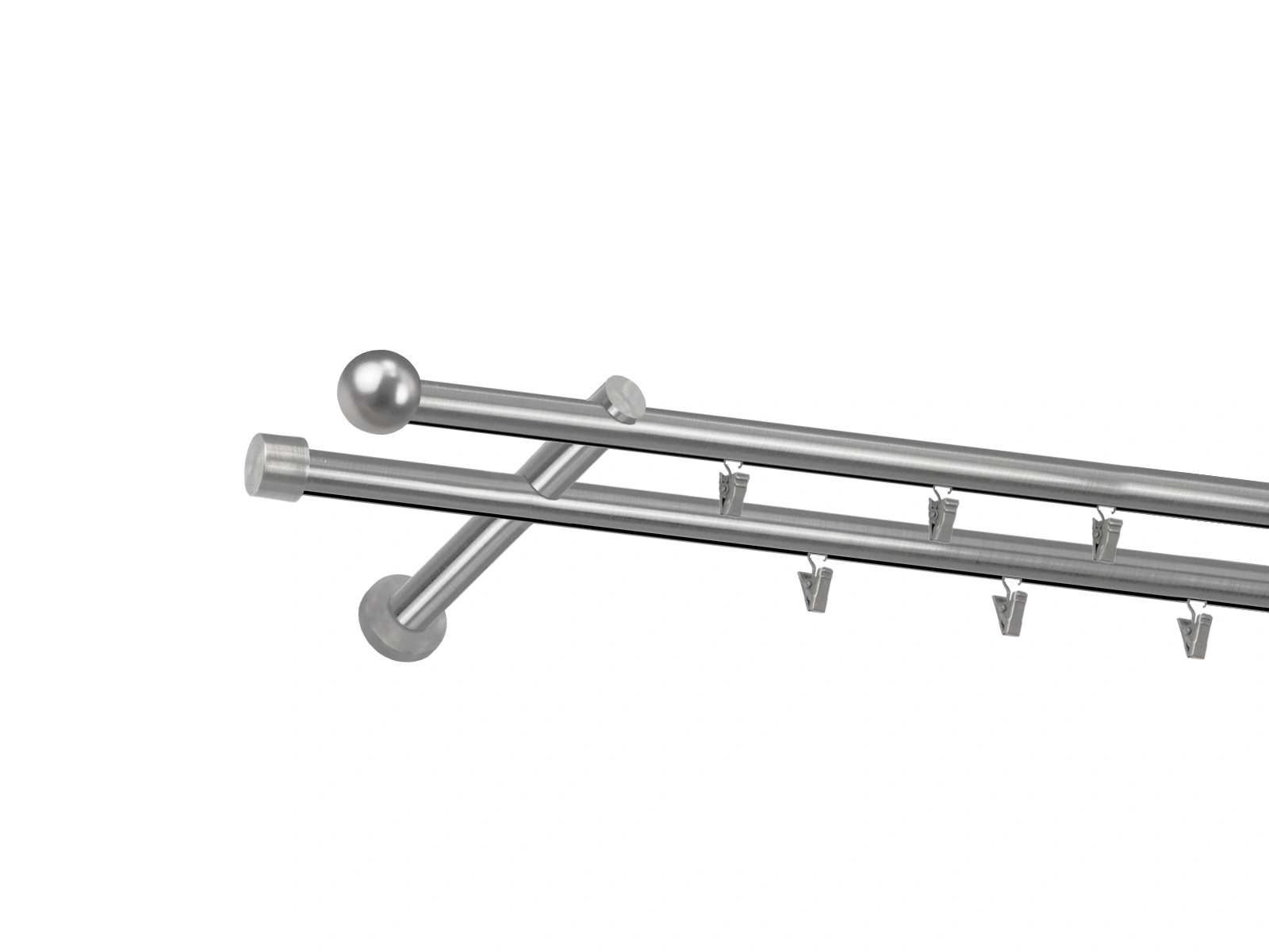 Dvojradová garniža s povrchovou úpravou - odtieň satin-nikel (matné striebro). Celokovové garniže s kvalitnou povrchovou úpravou - galvanické pokovovanie. Galvanické pokovovanie zabezpečuje vyššiu povrchovú tvrdosť, zvýšenú dolnosť voči poškriabaniu, hladký povrch. Dodávané sú v kompletoch.