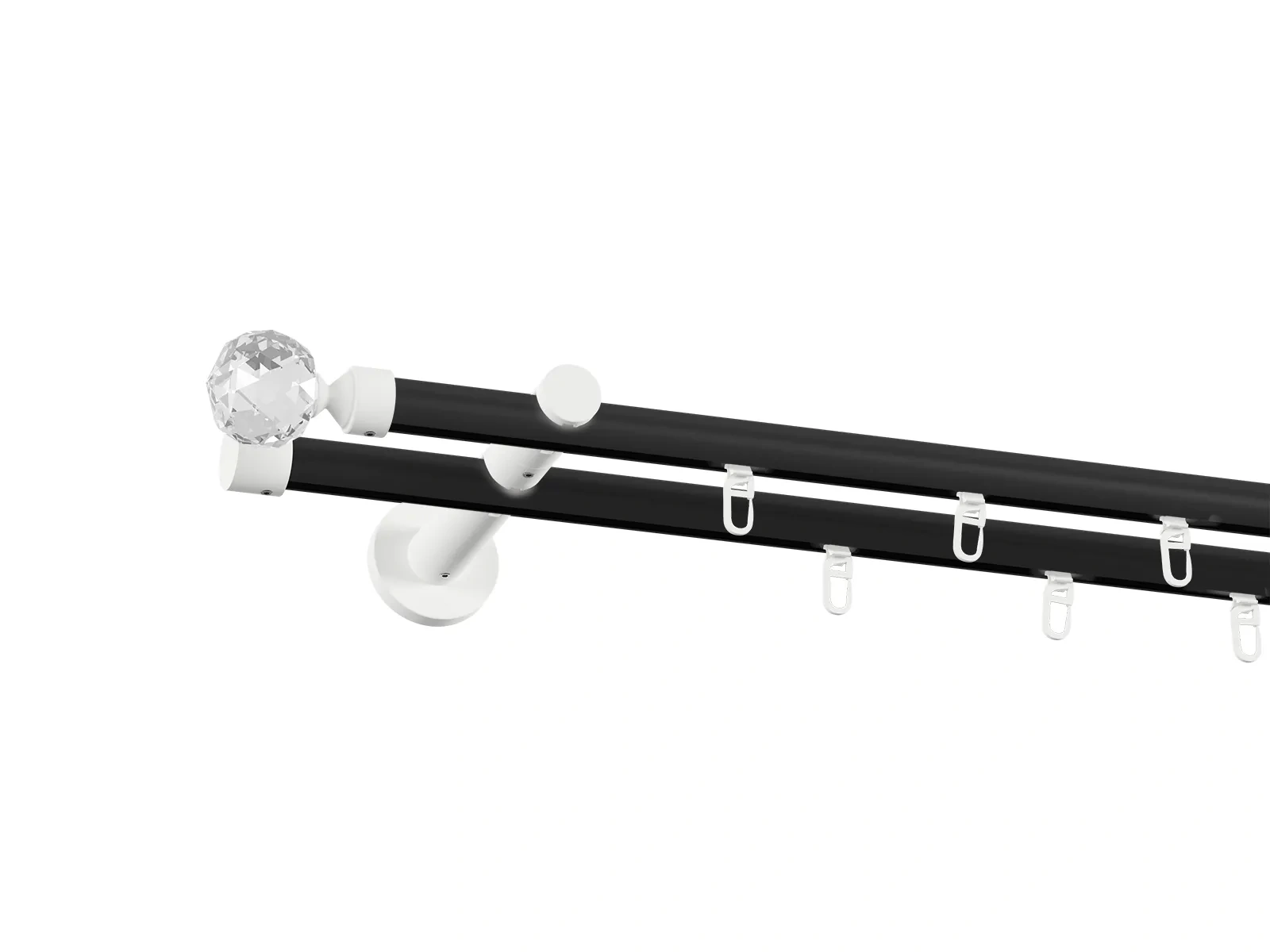 Čierne a biele kovové rúrky pre garniže s klasickým a drážkovým profilom