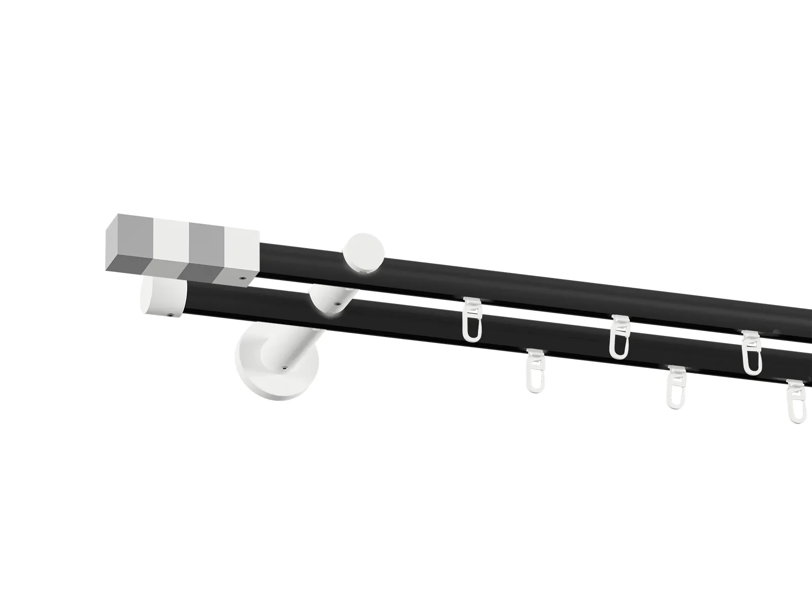 Čierne a biele kovové rúrky pre garniže s klasickým a drážkovým profilom
