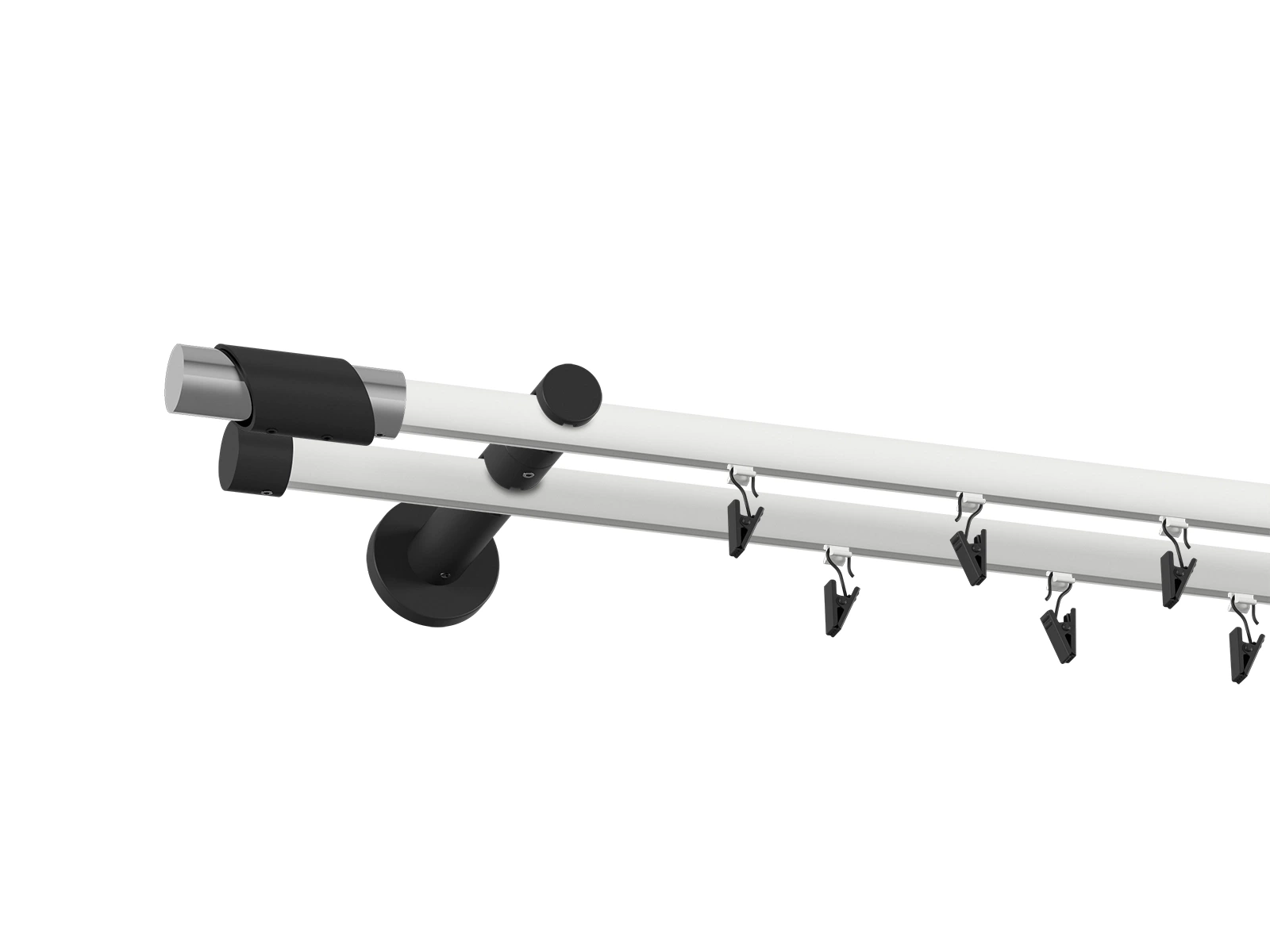 Čierne a biele kovové rúrky pre garniže s klasickým a drážkovým profilom