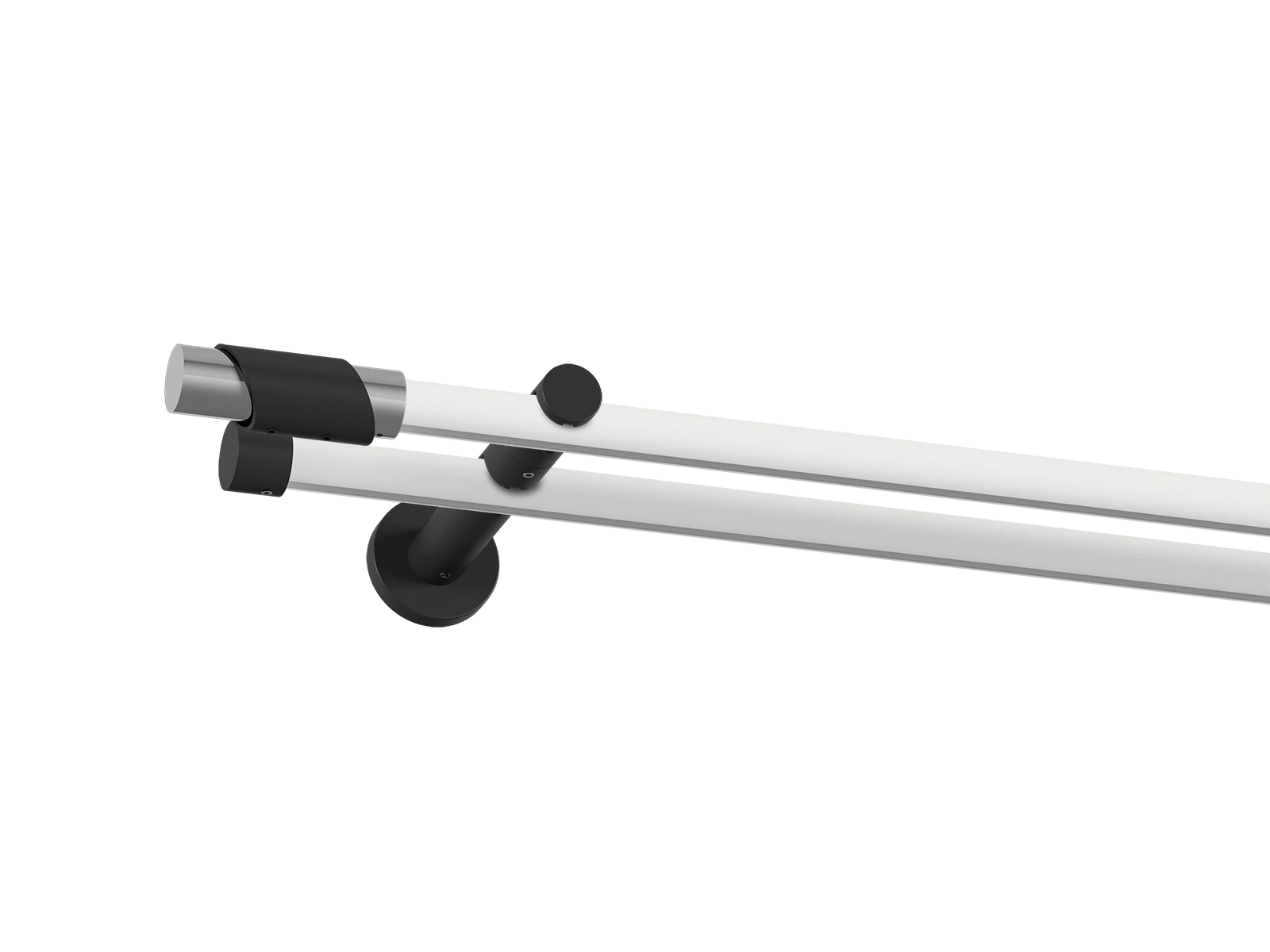• Dĺžka 1600 mm - tyč 19mm - 1600mm - 2ks, držiak dvojitý - 2ks, koncovka - 2ks, koncovka zadná (PULLO) - 2ks, krúžok so štipcom - 30ks (pri výbere parametra príslušenstvo s krúžkami so štipcom), skrutky a hmoždinky na montáž