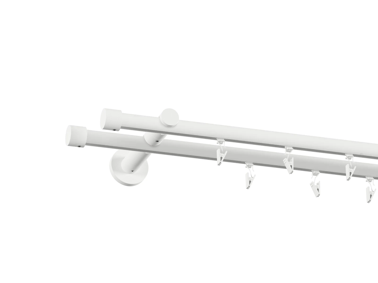 • V prípade, že ste si objednali ku garniži príslušenstvo, navlečte krúžky so štipcami na tyč., Následne dotiahnite poistné skrutky na držiaku, ktoré zabránia pohybu tyče.