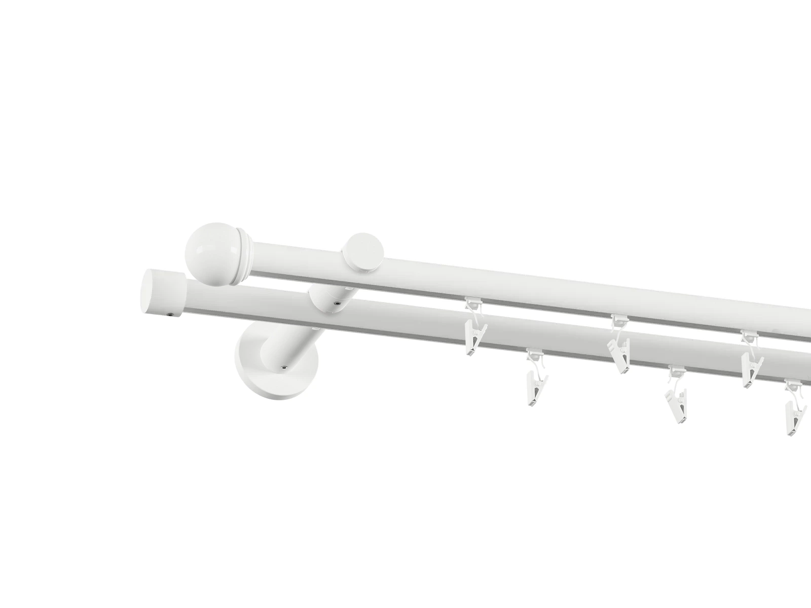 • Dĺžka 1600 mm - tyč 19mm - 1600mm - 2ks, držiak dvojitý - 2ks, koncovka - 2ks, koncovka zadná (PULLO) - 2ks, krúžok so štipcom - 30ks (pri výbere parametra príslušenstvo s krúžkami so štipcom), skrutky a hmoždinky na montáž