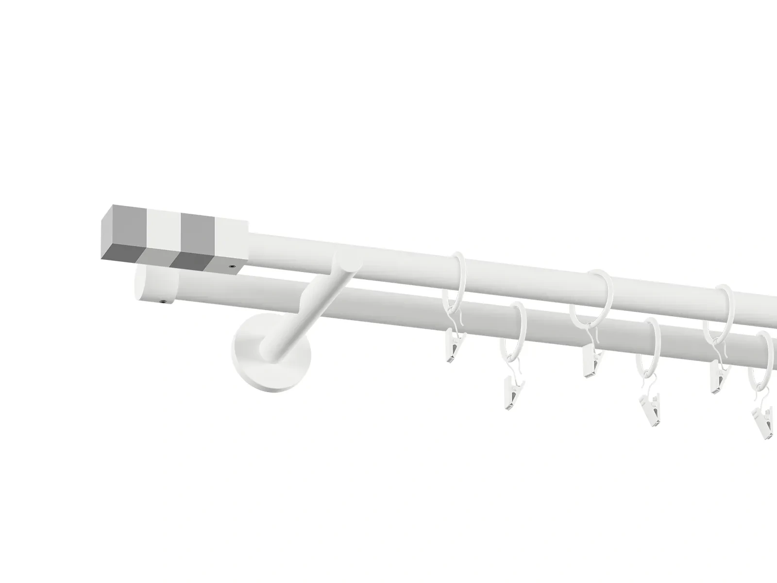 • Dĺžka 1800 mm - tyč 19mm - 1800mm - 2ks, držiak dvojitý - 2ks, koncovka - 2ks, koncovka zadná (PULLO) - 2ks, krúžok so štipcom - 34ks (pri výbere parametra príslušenstvo s krúžkami so štipcom), skrutky a hmoždinky na montáž