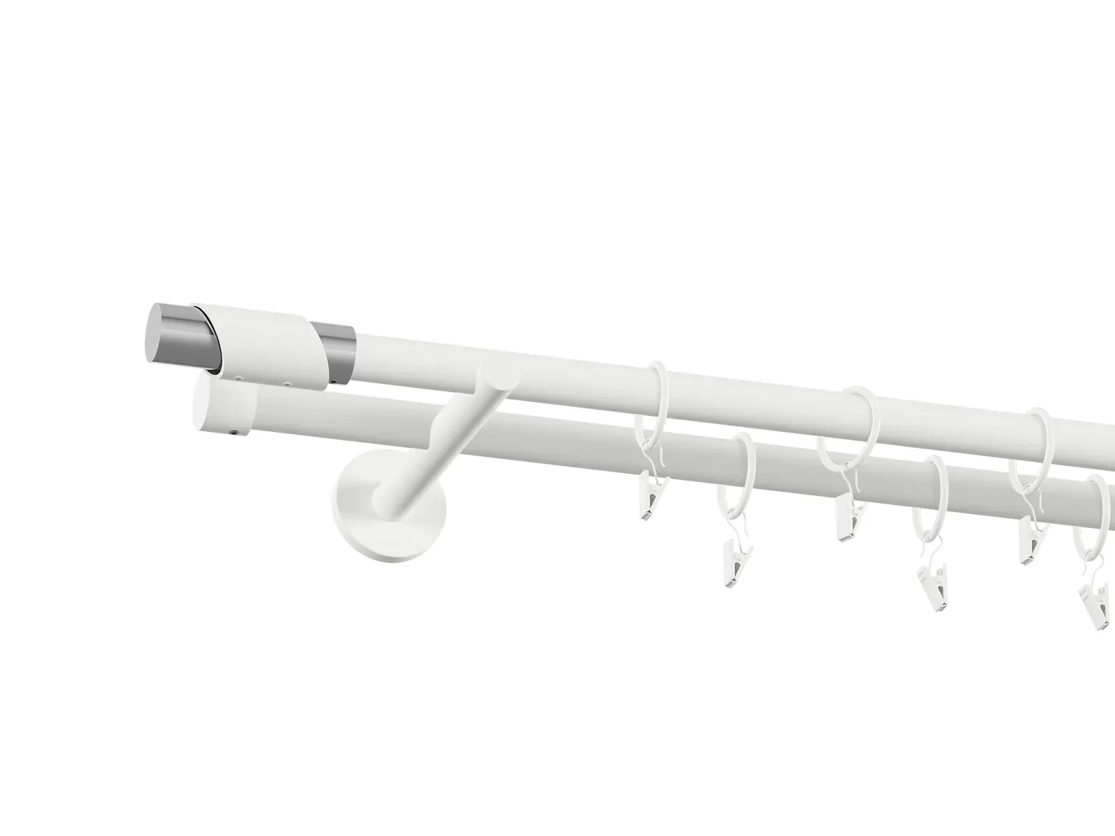 • Dĺžka 1600 mm - tyč 19mm - 1600mm - 2ks, držiak dvojitý - 2ks, koncovka - 2ks, koncovka zadná (PULLO) - 2ks, krúžok so štipcom - 30ks (pri výbere parametra príslušenstvo s krúžkami so štipcom), skrutky a hmoždinky na montáž