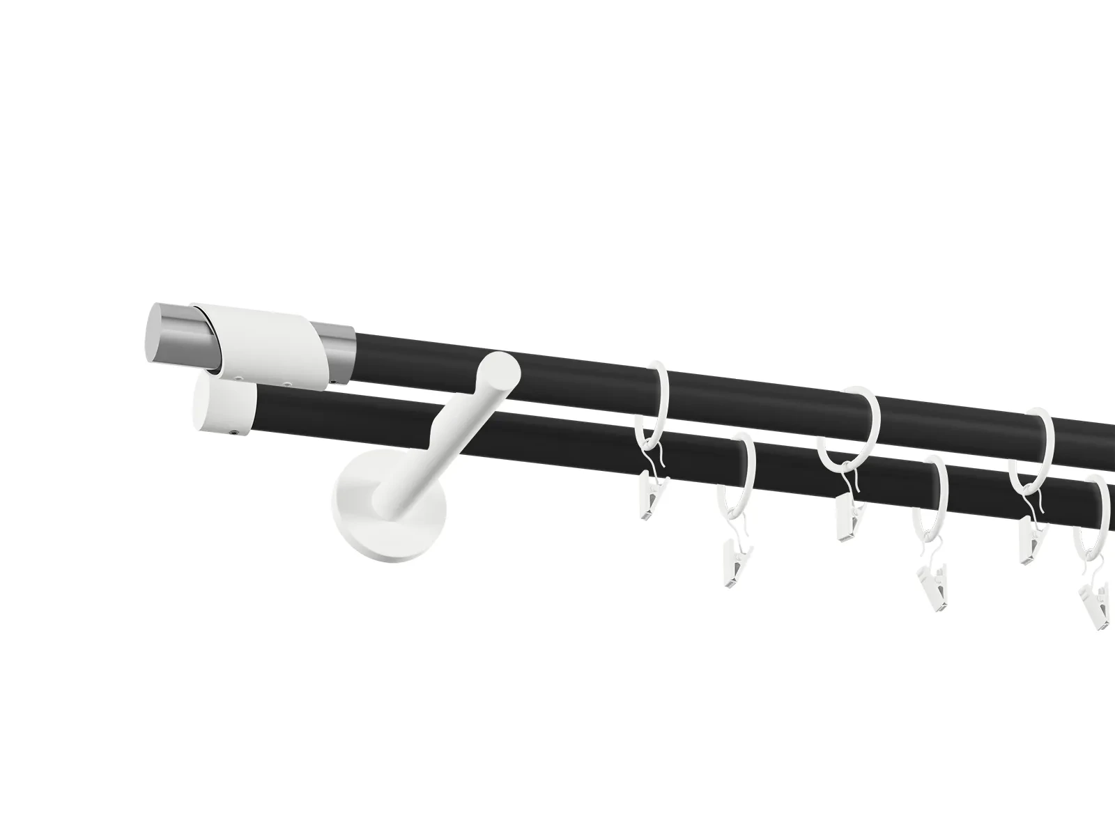 Čierne a biele kovové rúrky pre garniže s klasickým a drážkovým profilom