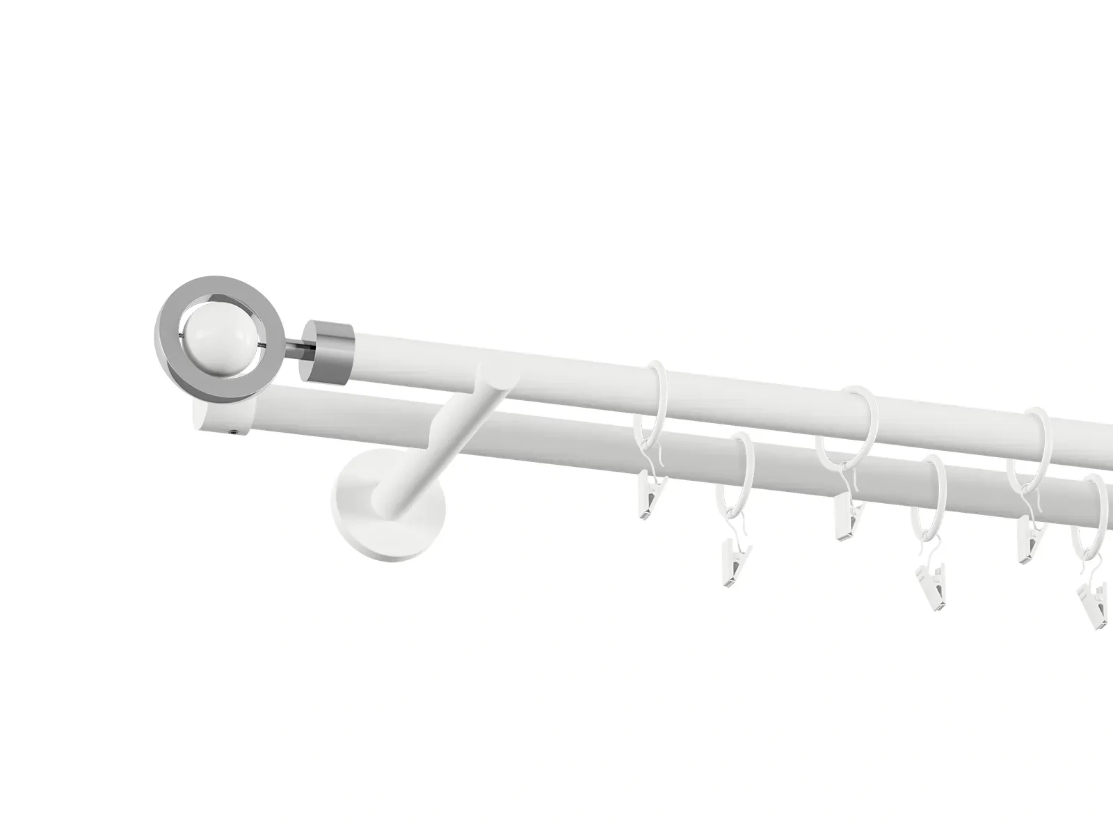 • V prípade, že ste si objednali ku garniži príslušenstvo, navlečte krúžky so štipcami na tyč., Následne dotiahnite poistné skrutky na držiaku, ktoré zabránia pohybu tyče.