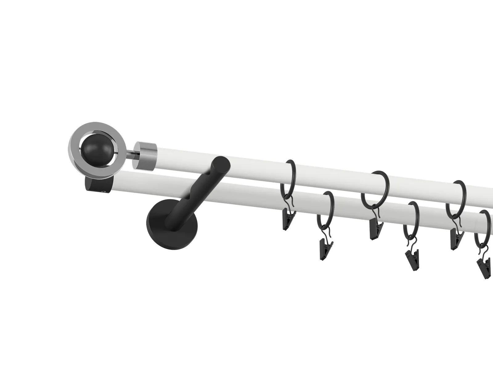 • Dĺžka 1800 mm - tyč 19mm - 1800mm - 2ks, držiak dvojitý - 2ks, koncovka - 2ks, koncovka zadná (PULLO) - 2ks, krúžok so štipcom - 34ks (pri výbere parametra príslušenstvo s krúžkami so štipcom), skrutky a hmoždinky na montáž