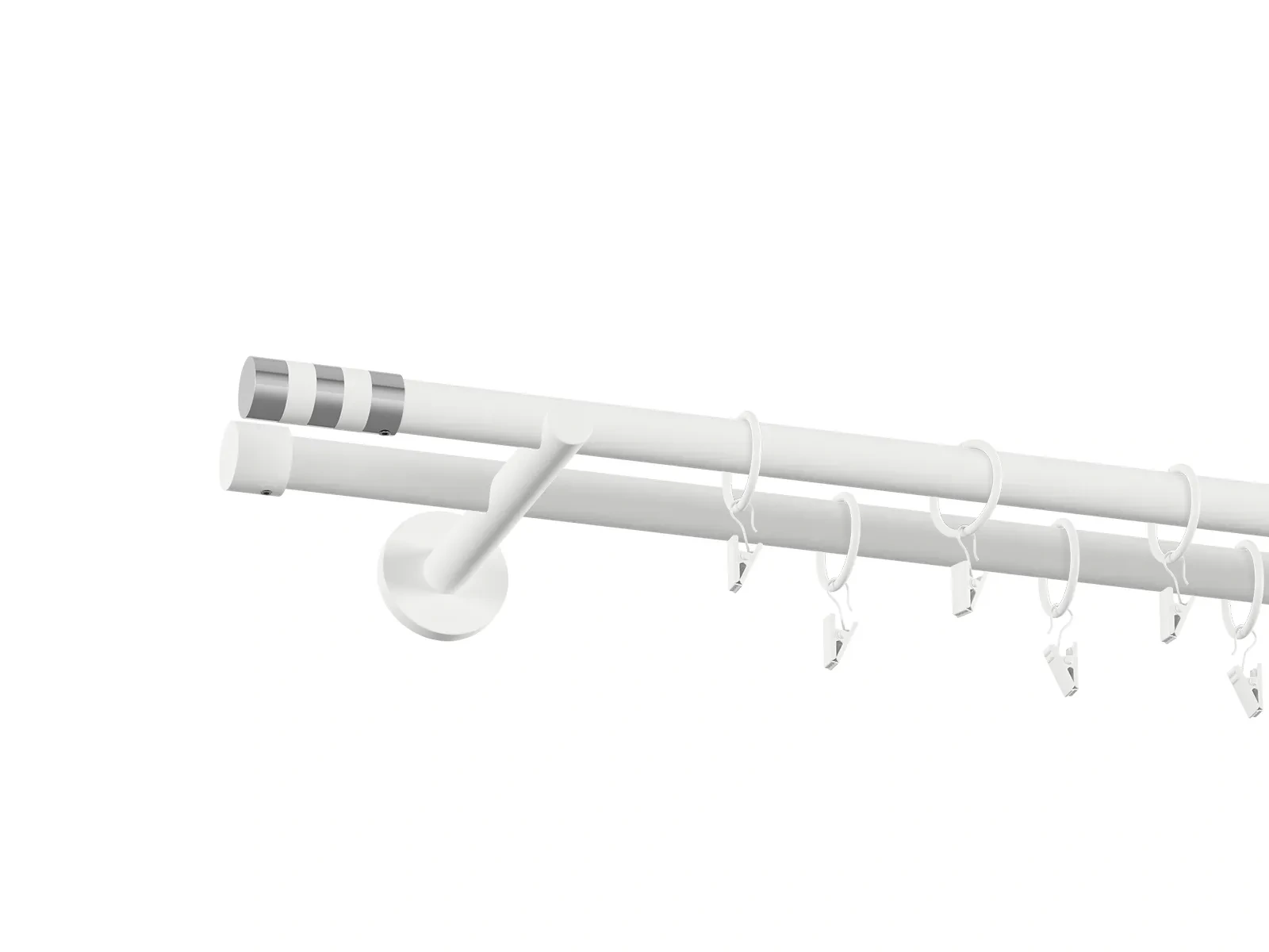 • Dĺžka 1600 mm - tyč 19mm - 1600mm - 2ks, držiak dvojitý - 2ks, koncovka - 2ks, koncovka zadná (PULLO) - 2ks, krúžok so štipcom - 30ks (pri výbere parametra príslušenstvo s krúžkami so štipcom), skrutky a hmoždinky na montáž