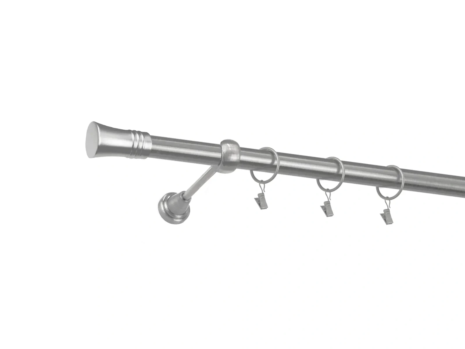 • Dĺžka 1600 mm - tyč 25mm - 1600mm - 1ks, držiak - 2ks, koncovka - 2ks, krúžok so štipcom - 15ks (pri výbere parametra príslušenstvo s krúžkami so štipcom), skrutky a hmoždinky na montáž