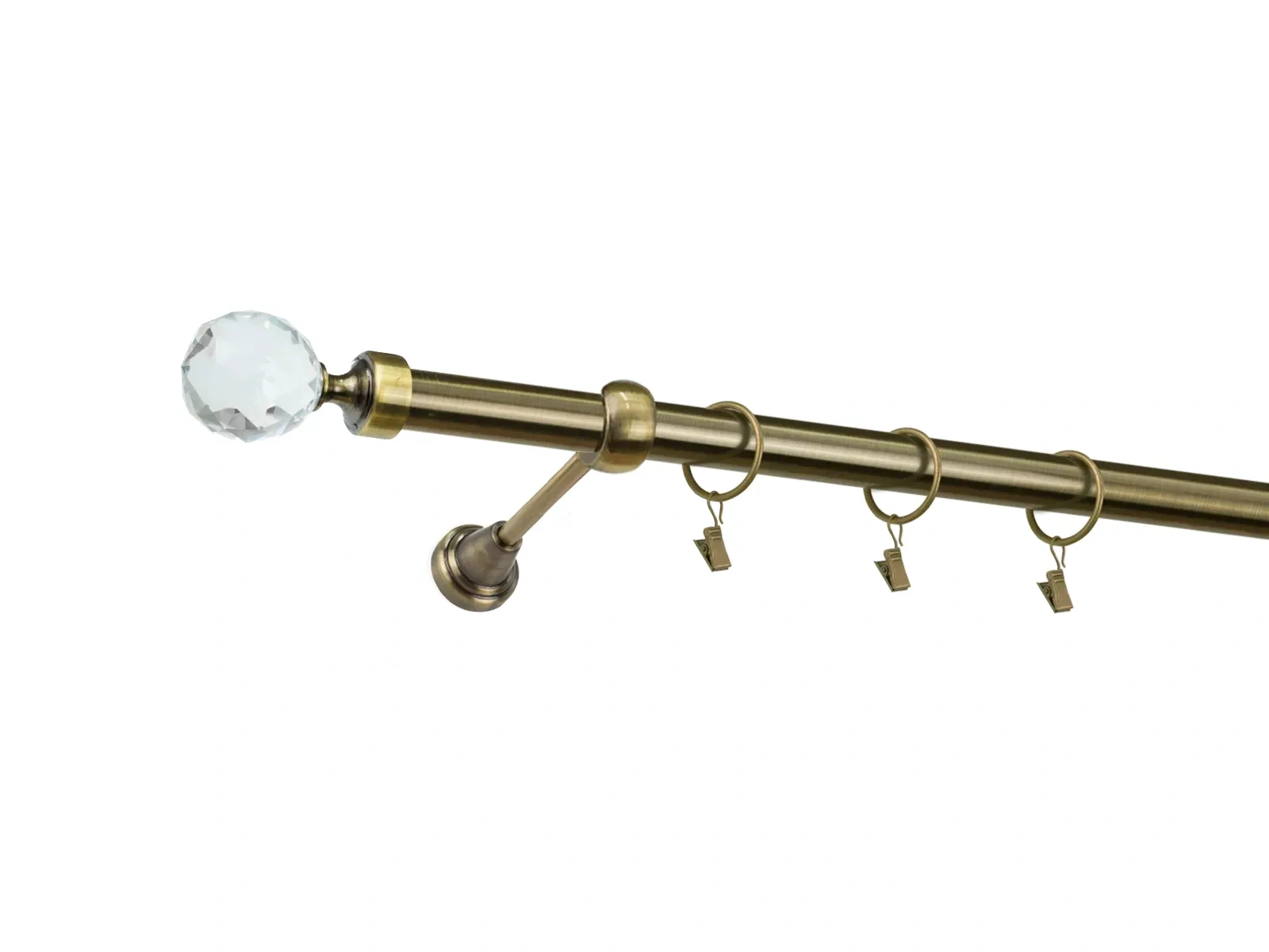 • Dĺžka 2400 mm - tyč 25mm - 2400mm - 1ks, držiak - 2ks, koncovka - 2ks, krúžok so štipcom - 23ks (pri výbere parametra príslušenstvo s krúžkami so štipcom), skrutky a hmoždinky na montáž