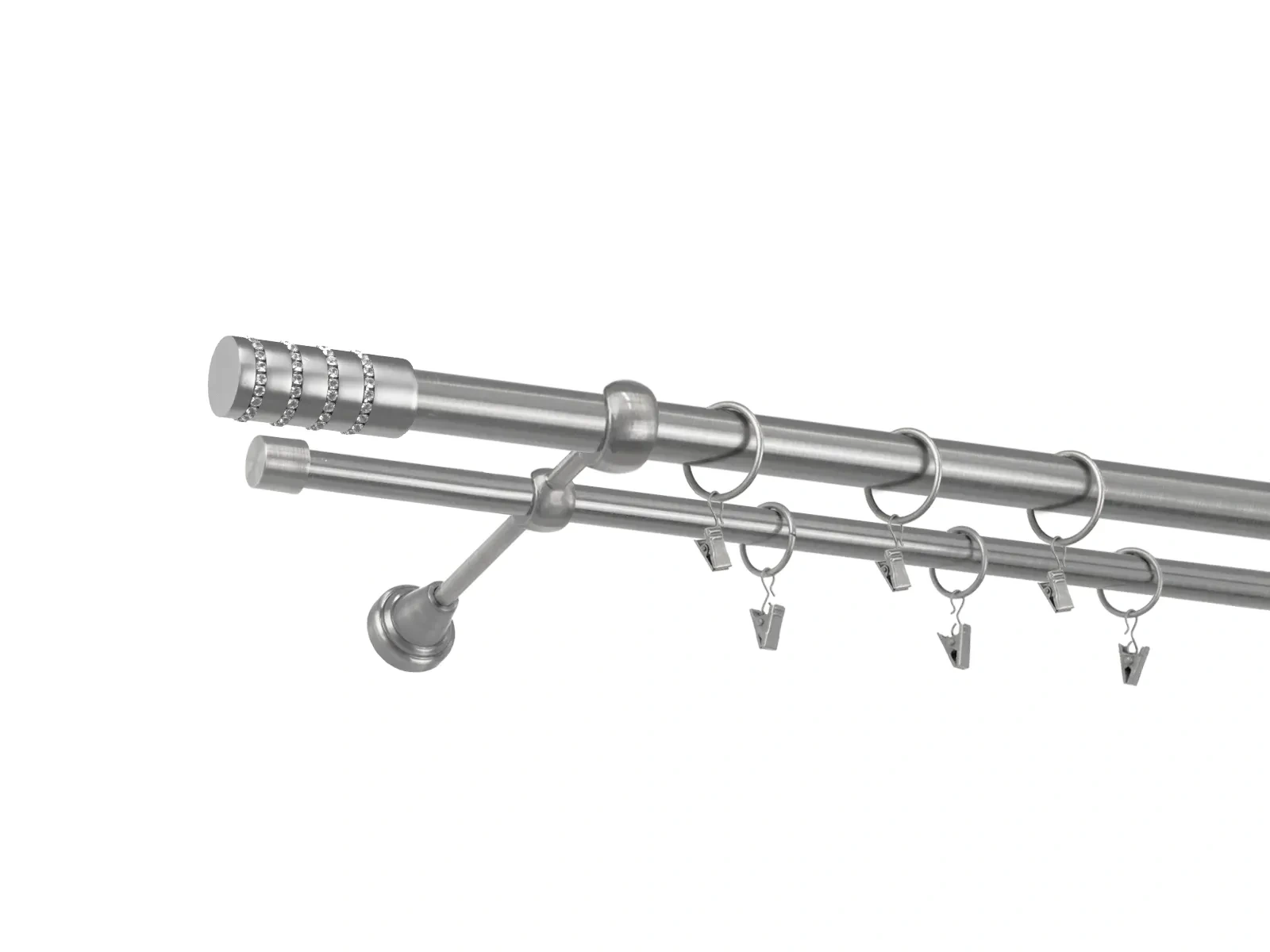 • Dĺžka 2000 mm - tyč 25mm - 2000mm - 1ks,  tyč 16mm - 2000mm - 1ks, držiak dvojitý - 2ks, koncovka - 2ks, koncovka zadná (PULLO) - 2ks, krúžok so štipcom - 38ks (pri výbere parametra príslušenstvo s krúžkami so štipcom), skrutky a hmoždinky na montáž