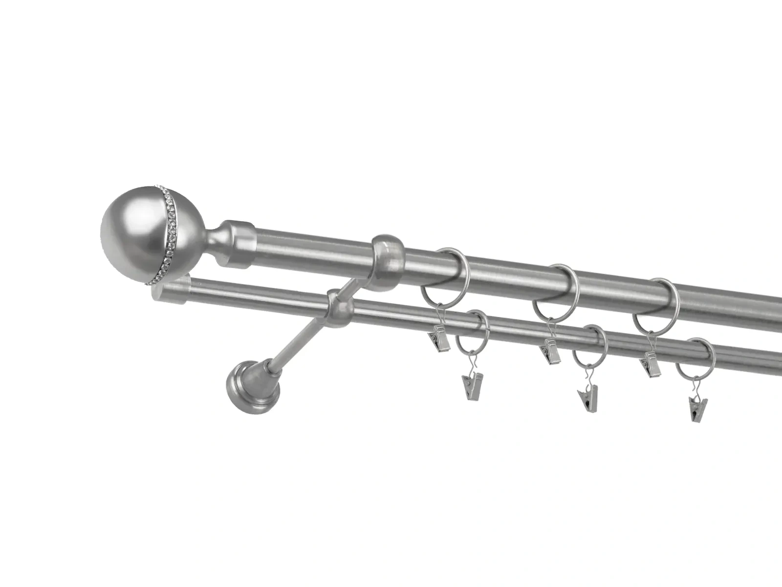 • Dĺžka 3000 mm - tyč 25mm - 3000mm - 1ks,  tyč 16mm - 3000mm - 1ks, držiak dvojitý - 3ks, koncovka - 2ks, koncovka zadná (PULLO) - 2ks, krúžok so štipcom - 56ks (pri výbere parametra príslušenstvo s krúžkami so štipcom), skrutky a hmoždinky na montáž