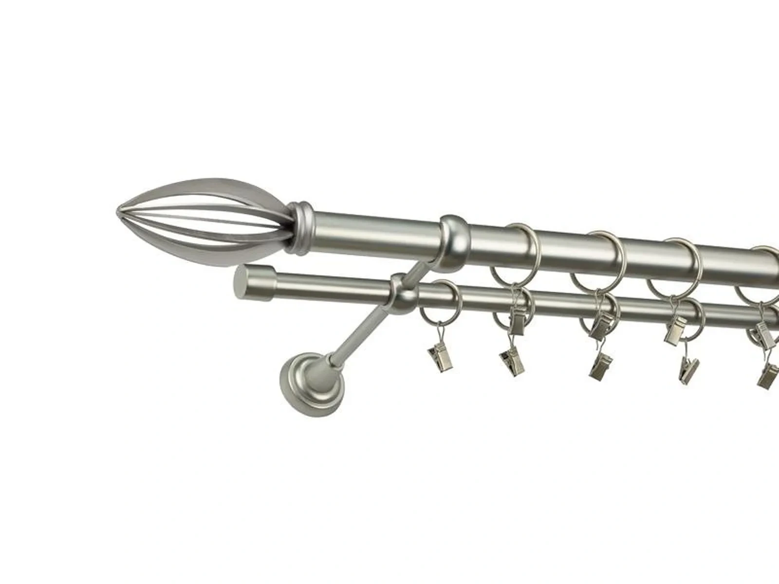 • Dĺžka 1200 mm - tyč 25mm - 1200mm - 1ks,  tyč 16mm - 1200mm - 1ks, držiak dvojitý - 2ks, koncovka - 2ks, koncovka zadná (PULLO) - 2ks, krúžok so štipcom - 22ks (pri výbere parametra príslušenstvo s krúžkami so štipcom), skrutky a hmoždinky na montáž