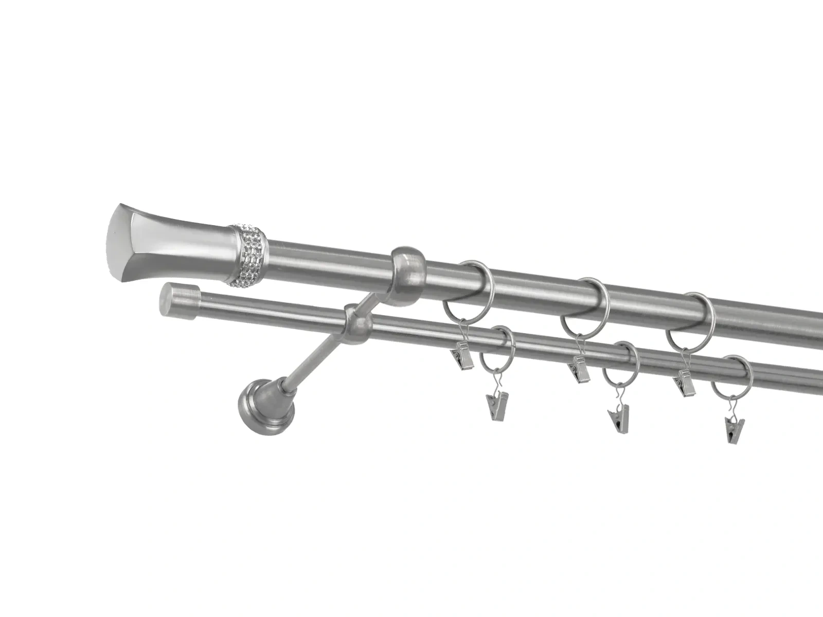 Kvalitné kovové garniže o priemere prednej tyče 25mm a zadnej 16mm. Všetky tyče, koncovky a držiaky sú s povrchovou úpravou galvanizácie.