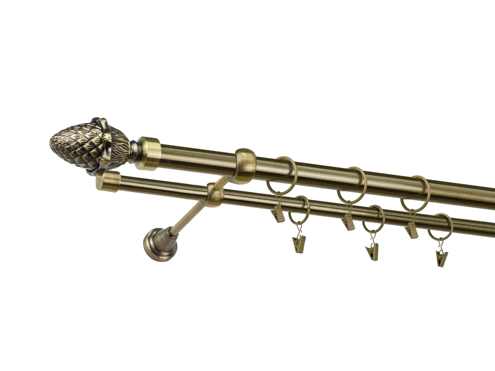 • Dĺžka 1200 mm - tyč 25mm - 1200mm - 1ks,  tyč 16mm - 1200mm - 1ks, držiak dvojitý - 2ks, koncovka - 2ks, koncovka zadná (PULLO) - 2ks, krúžok so štipcom - 22ks (pri výbere parametra príslušenstvo s krúžkami so štipcom), skrutky a hmoždinky na montáž