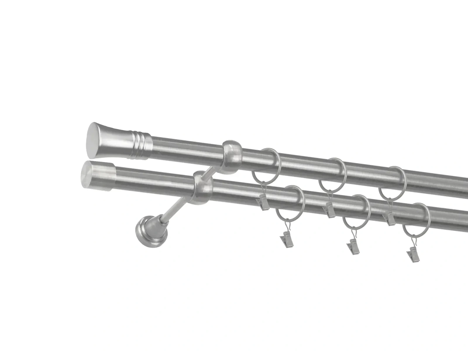 • Dĺžka 4400 mm - tyč 25mm - 2200mm - 4ks, spojka tyče – 2 ks, držiak dvojitý - 3ks, koncovka - 2ks, koncovka zadná (PULLO) - 2ks, krúžok so štipcom - 84ks (pri výbere parametra príslušenstvo s krúžkami so štipcom), skrutky a hmoždinky na montáž