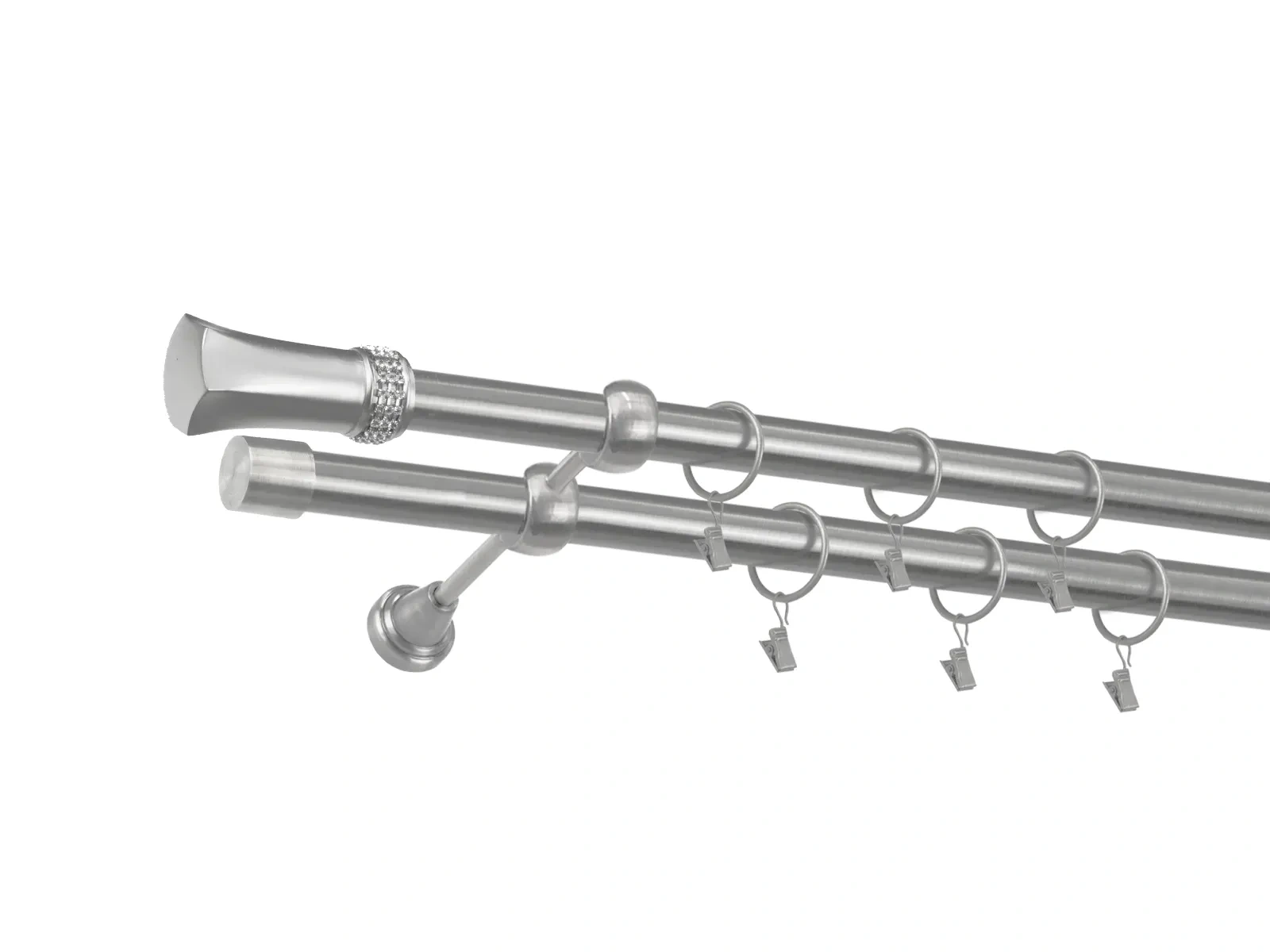 • Dĺžka 2200 mm - tyč 25mm - 2200mm - 2ks, držiak dvojitý - 2ks, koncovka - 2ks, koncovka zadná (PULLO) - 2ks, krúžok so štipcom - 42ks (pri výbere parametra príslušenstvo s krúžkami so štipcom), skrutky a hmoždinky na montáž
