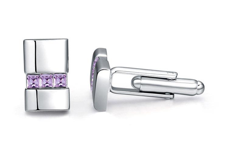 Pánske manžetové gombíky biele zlato fialové diamanty