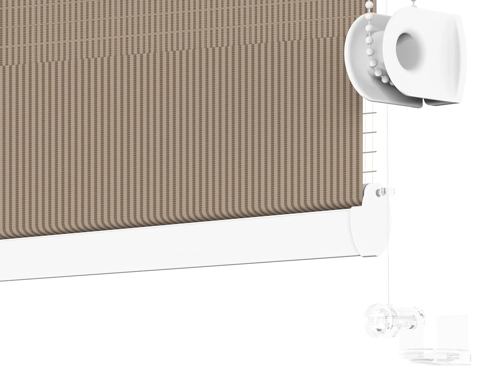 1. Vysuňte krytky z mechanizmu roletky, čím pripravíte roletu na montáž.