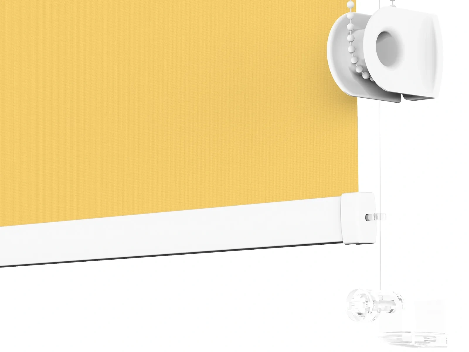 1. Vysuňte krytky z mechanizmu roletky, čím pripravíte roletu na montáž.