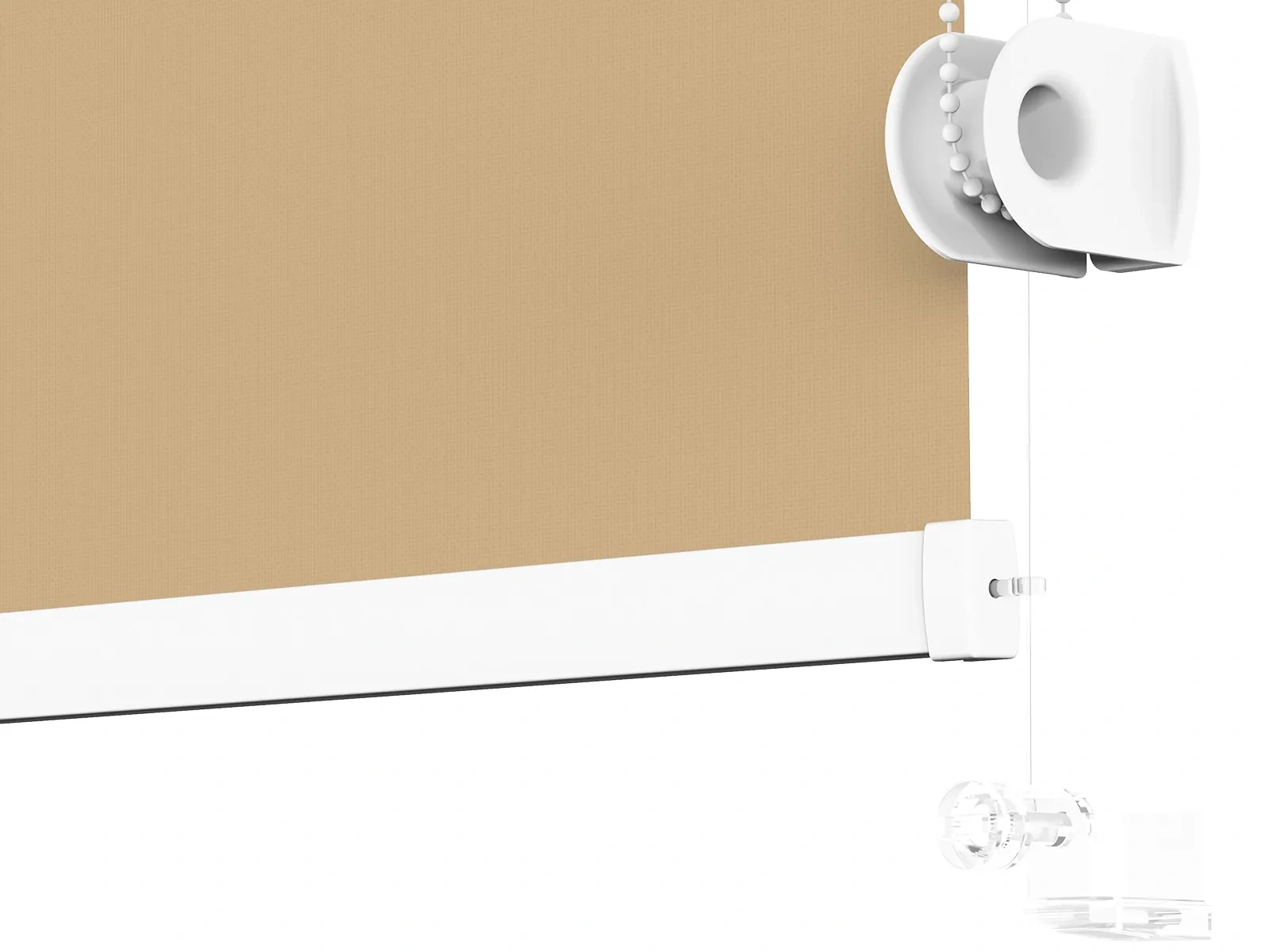 1. Vysuňte krytky z mechanizmu roletky, čím pripravíte roletu na montáž.