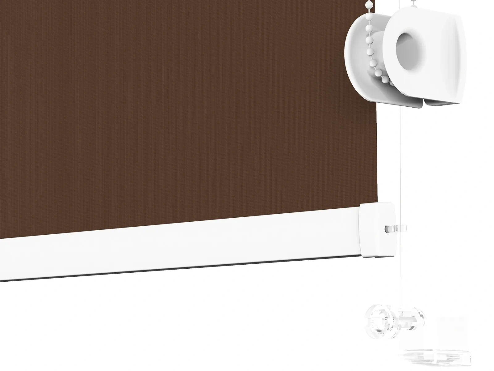 1. Vysuňte krytky z mechanizmu roletky, čím pripravíte roletu na montáž.