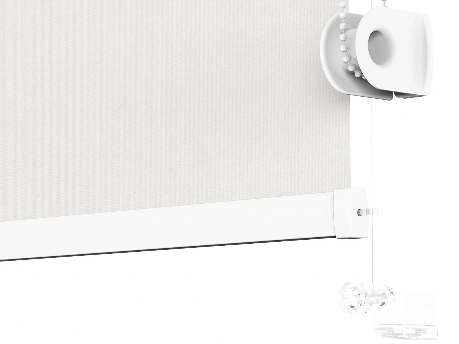 1. Vysuňte krytky z mechanizmu roletky, čím pripravíte roletu na montáž.