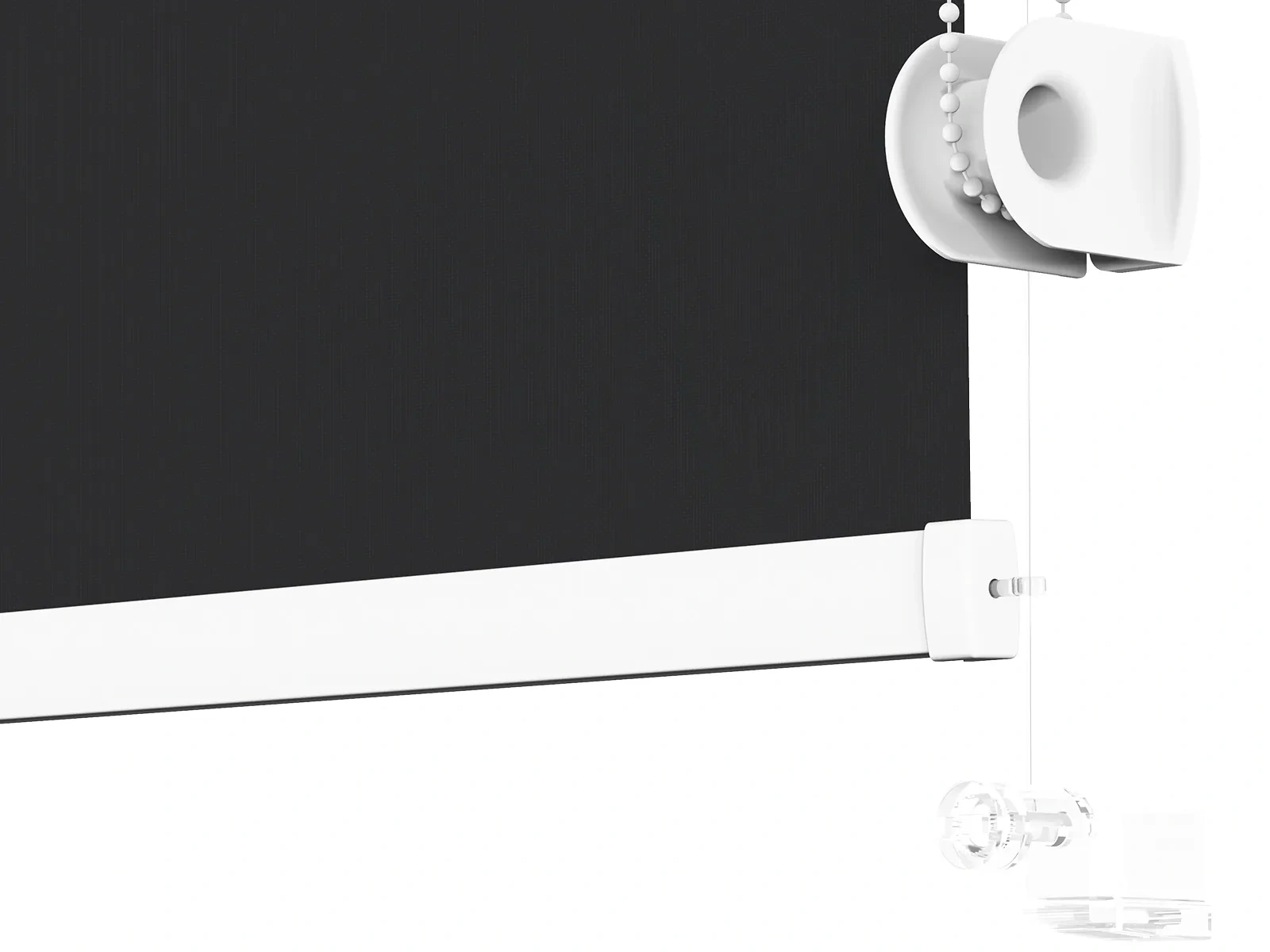1. Vysuňte krytky z mechanizmu roletky, čím pripravíte roletu na montáž.