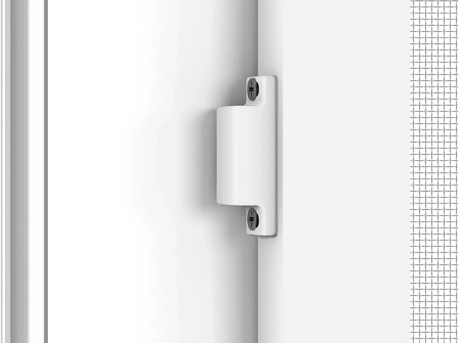 V prípade potreby môžete na rám krídla sieťky priskrutkovať madlo. Z madla odstráňte kryt skrutiek, určte požadovanú výšku madla a následne ho priskrutkujte pomocou priložených skrutiek typu TEX. Nakoniec kryt skrutiek opäť nacvaknite na madlo.