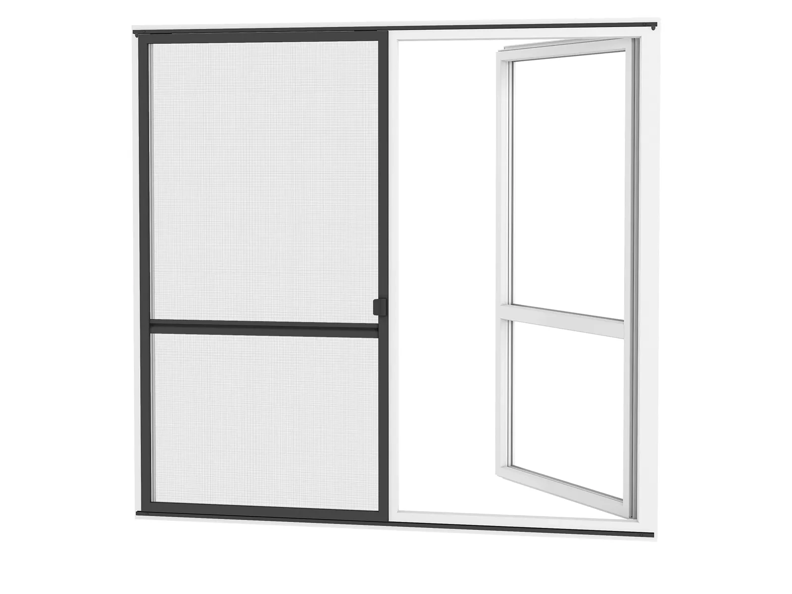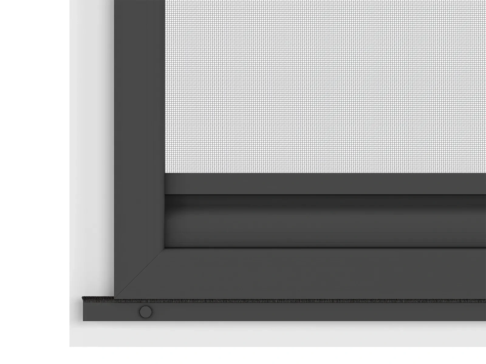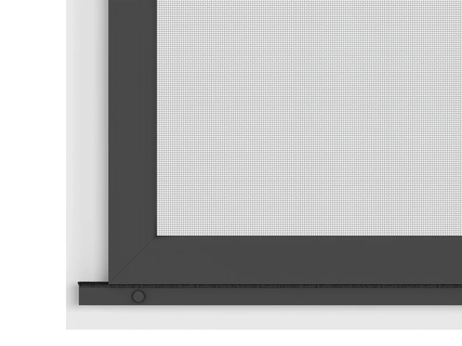 Posuvné sieťové dvere. Ľahký a plynulý posuv, vďaka kefkovému tesneniu.