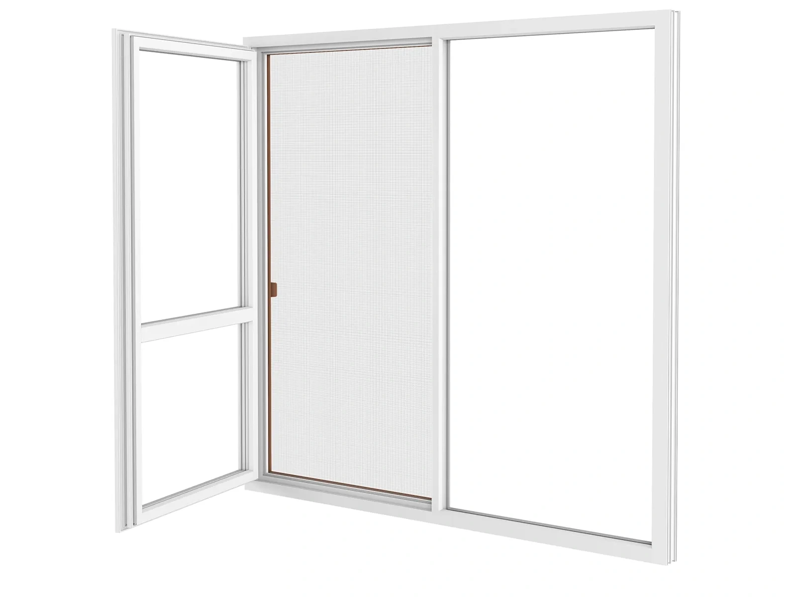 Posuvné sieťové dvere. Ľahký a plynulý posuv, vďaka kefkovému tesneniu.