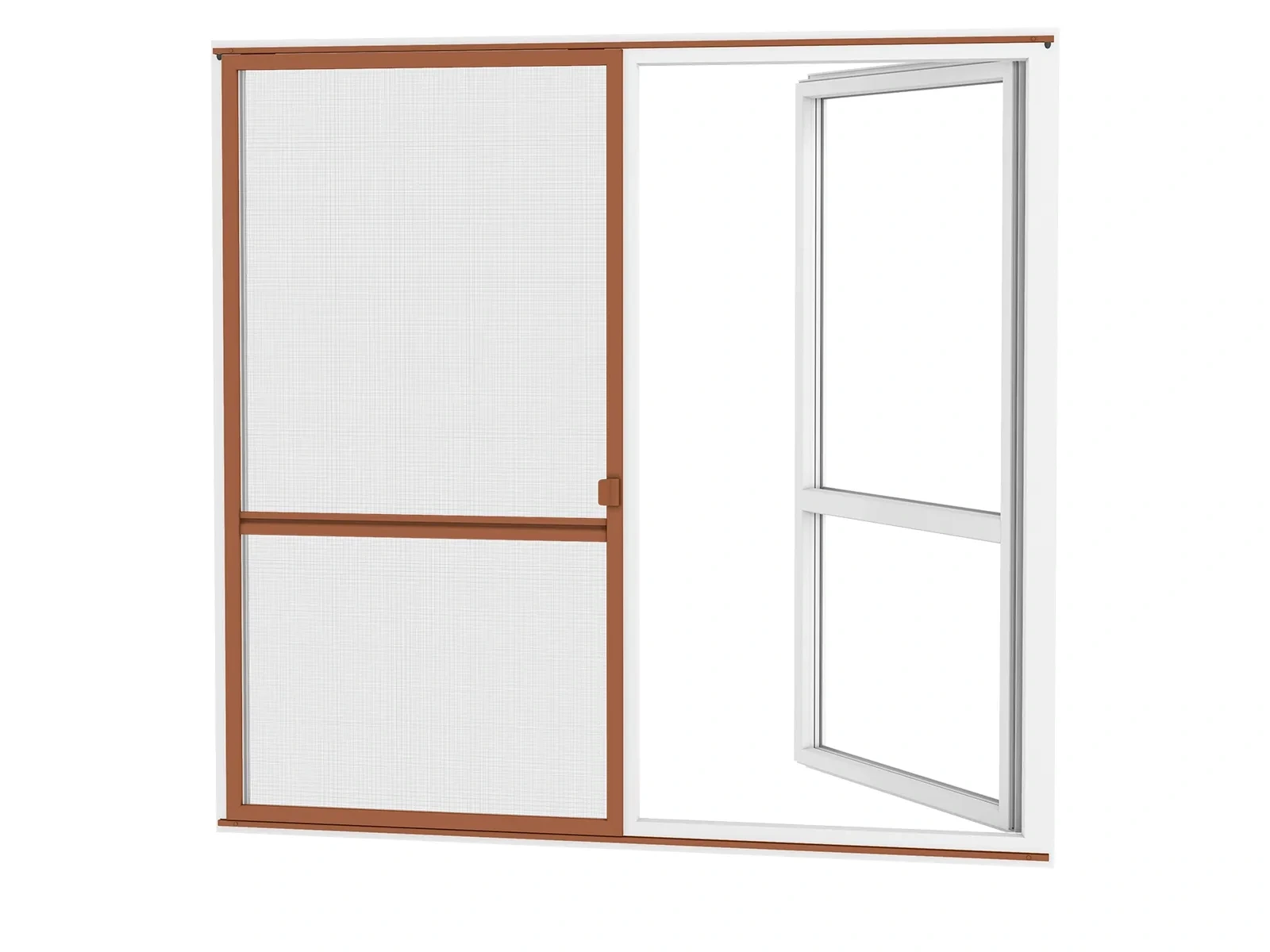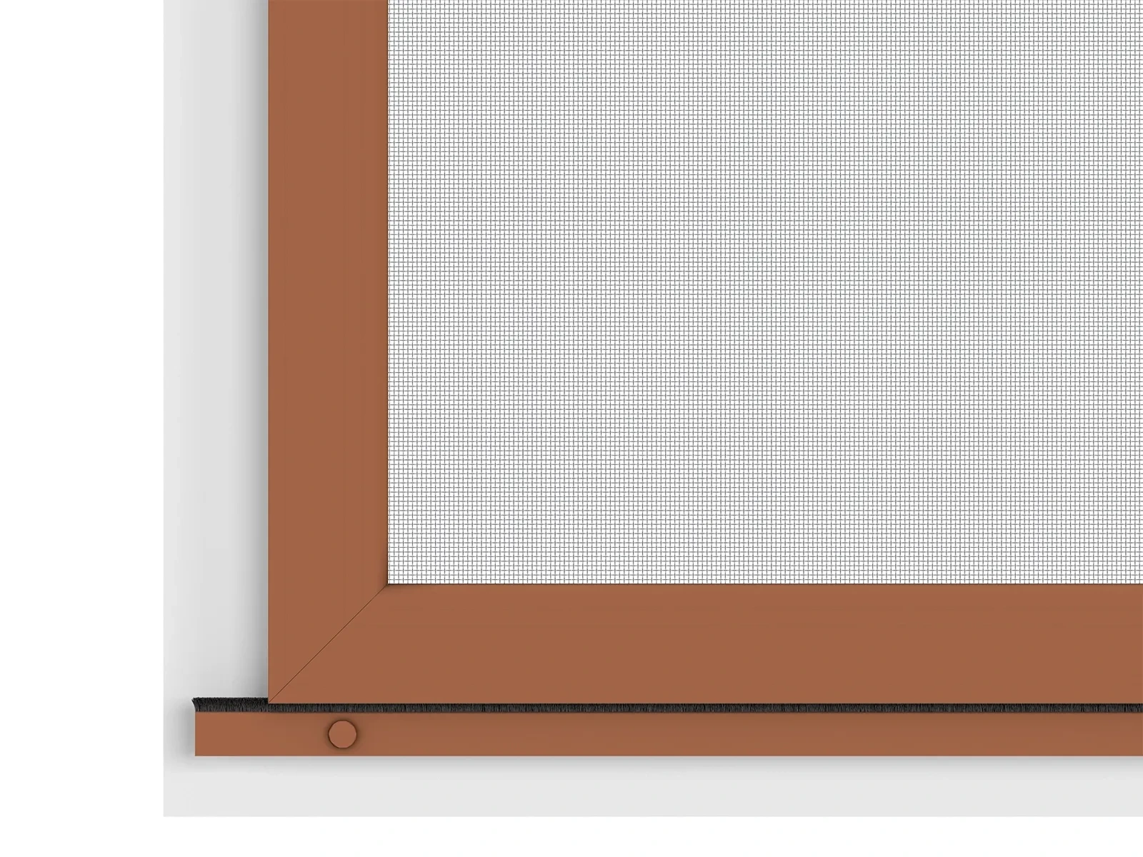Posuvné sieťové dvere. Ľahký a plynulý posuv, vďaka kefkovému tesneniu.