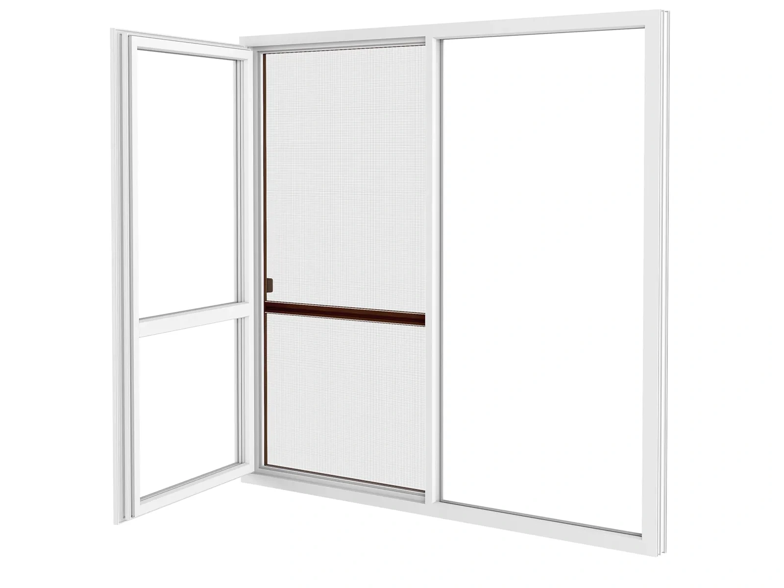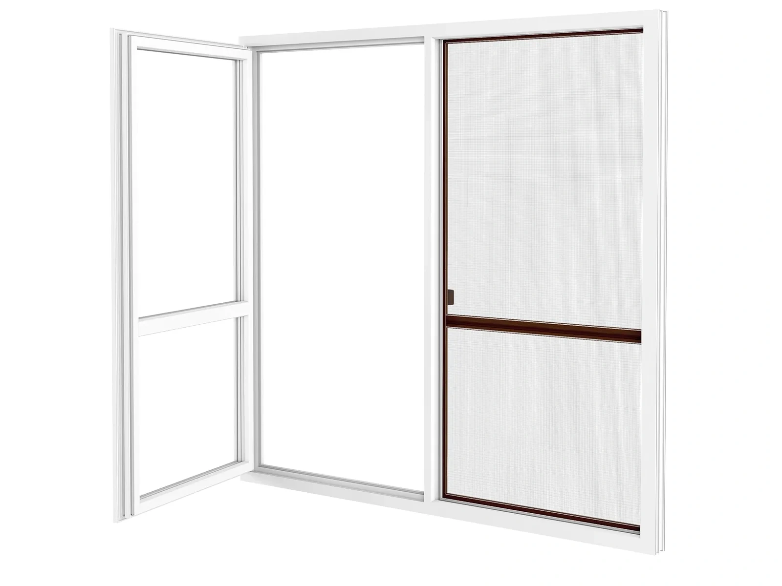 Posuvné sieťové dvere. Ľahký a plynulý posuv, vďaka kefkovému tesneniu.