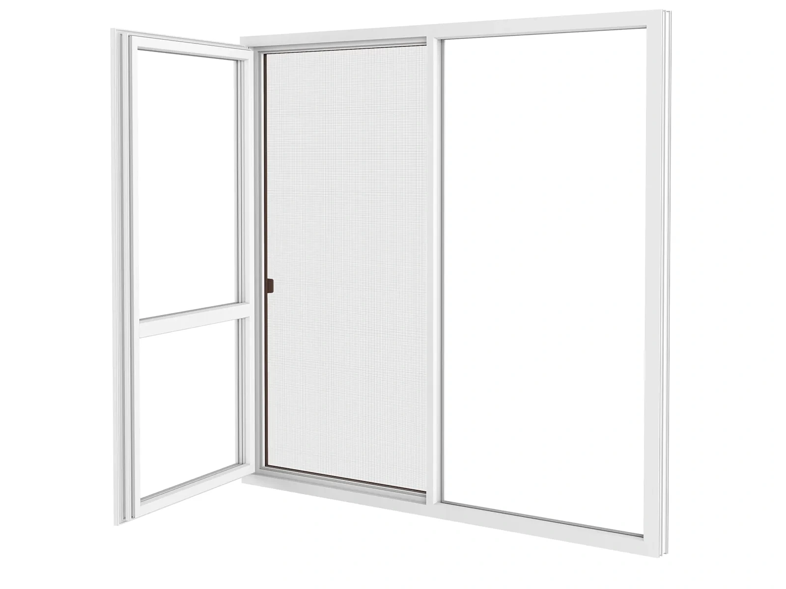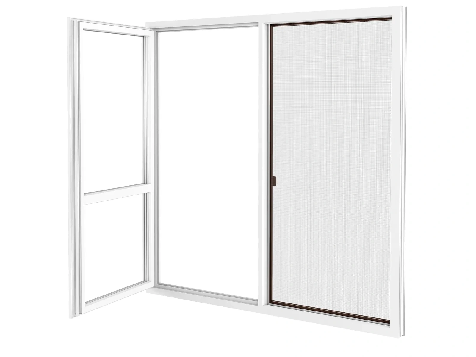 Posuvné sieťové dvere. Ľahký a plynulý posuv, vďaka kefkovému tesneniu.